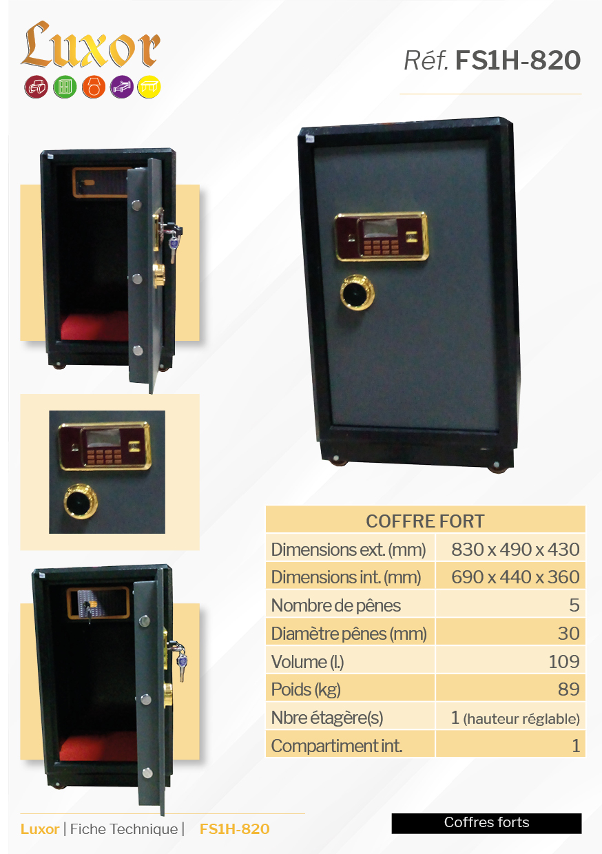 Coffre fort 830 x 490 x 430 mm / 109 litres.